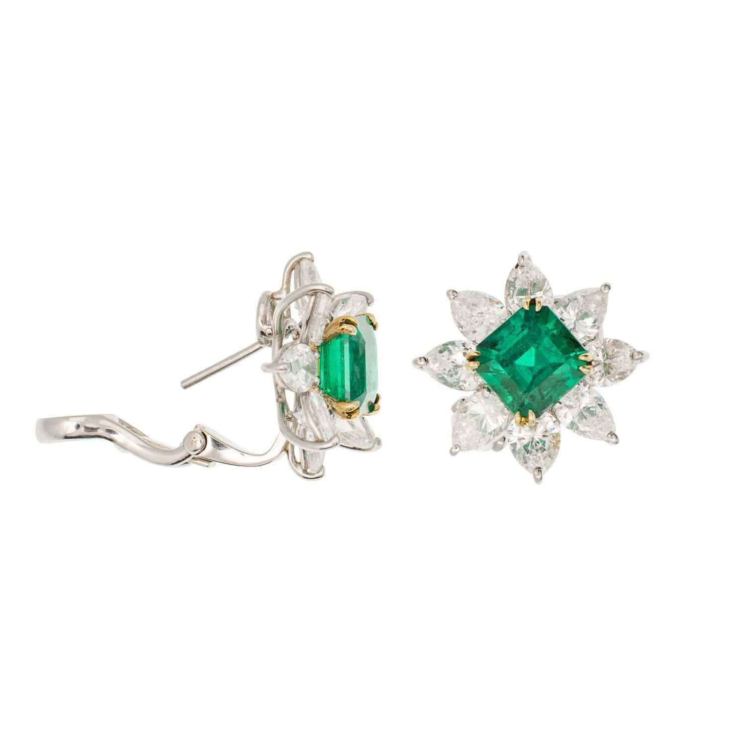 Bayco Emerald and Diamond Flower Motif Earrings (AMG567O) Overview: Gemstone and Diamond Details: Emeralds: Each earring features a stunning 4.11-carat emerald, showcasing vibrant green hue.